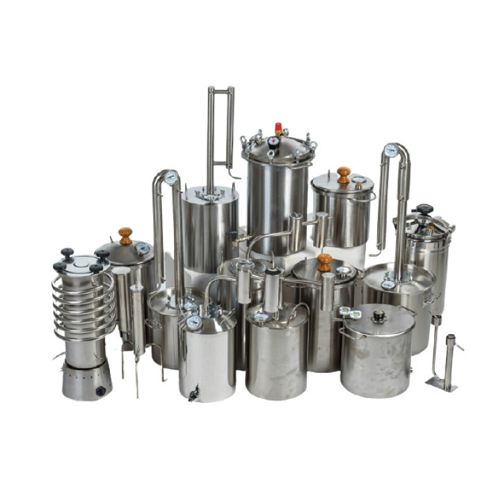 Destilācijas aparāti un kandžas aparāti, samogonkas aparāti, rektifikācijas kolonnas un dažāda tilpuma kubi. Nepieciešamās sastāvdaļas, spirta raugi un citi aksesuāri destilācijas un rektifikācijas procesam. Ozolkoka mucas, ozolkoka čipsi, garšvielu un garšaugu komplekti, dažādas esences dzērienu aromatizēšanai un uzlabošanai. Stikla pudeles dzērienu uzglabāšanai.