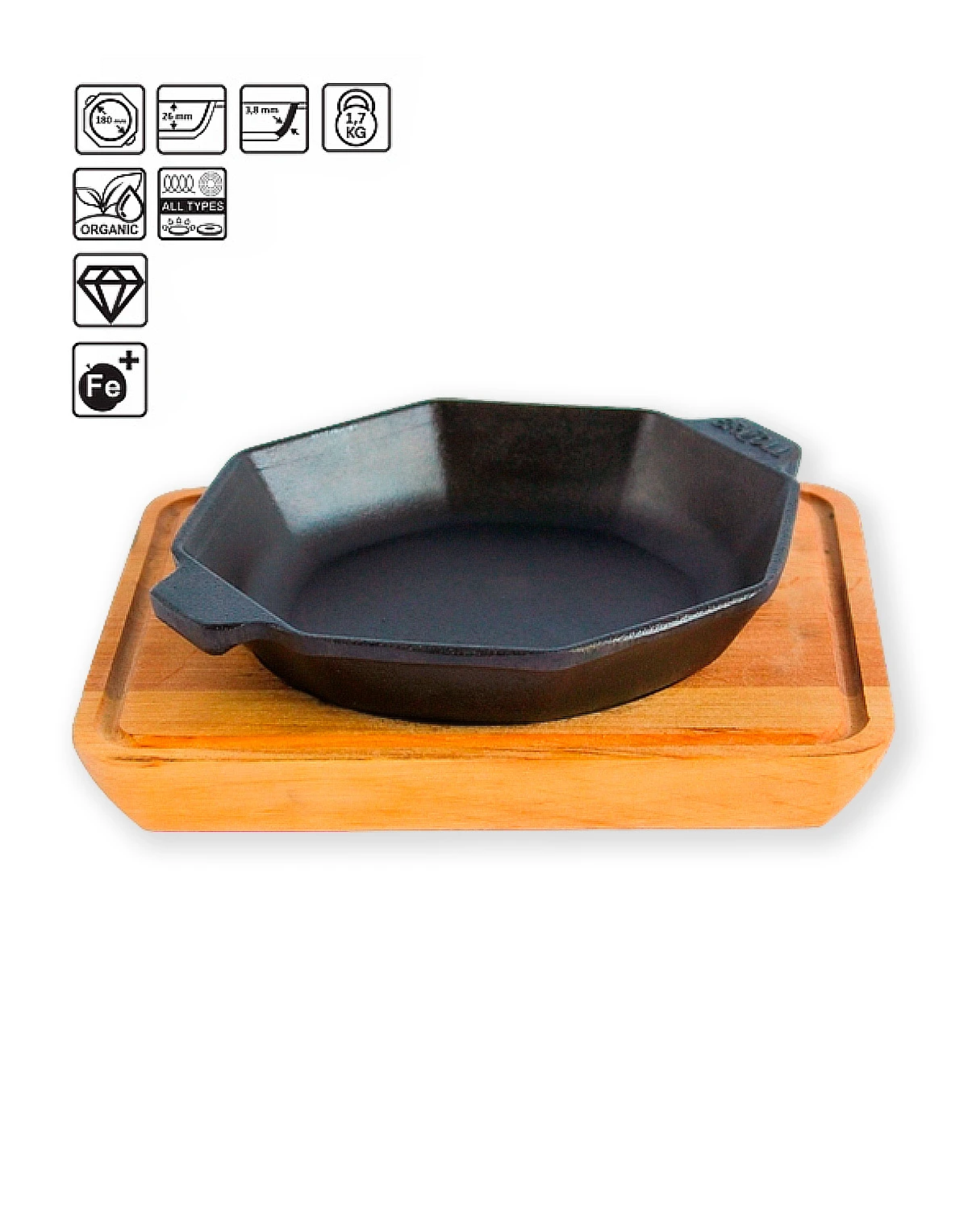160*25 mm čuguna panna HoReCa astoņstūras ar koka paliktni