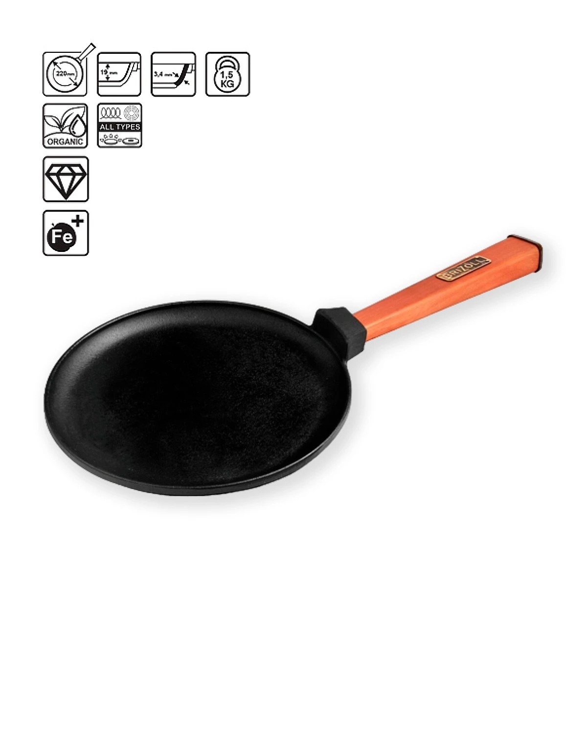 22*1.5 cm čuguna panna ar koka rokturi Optima
