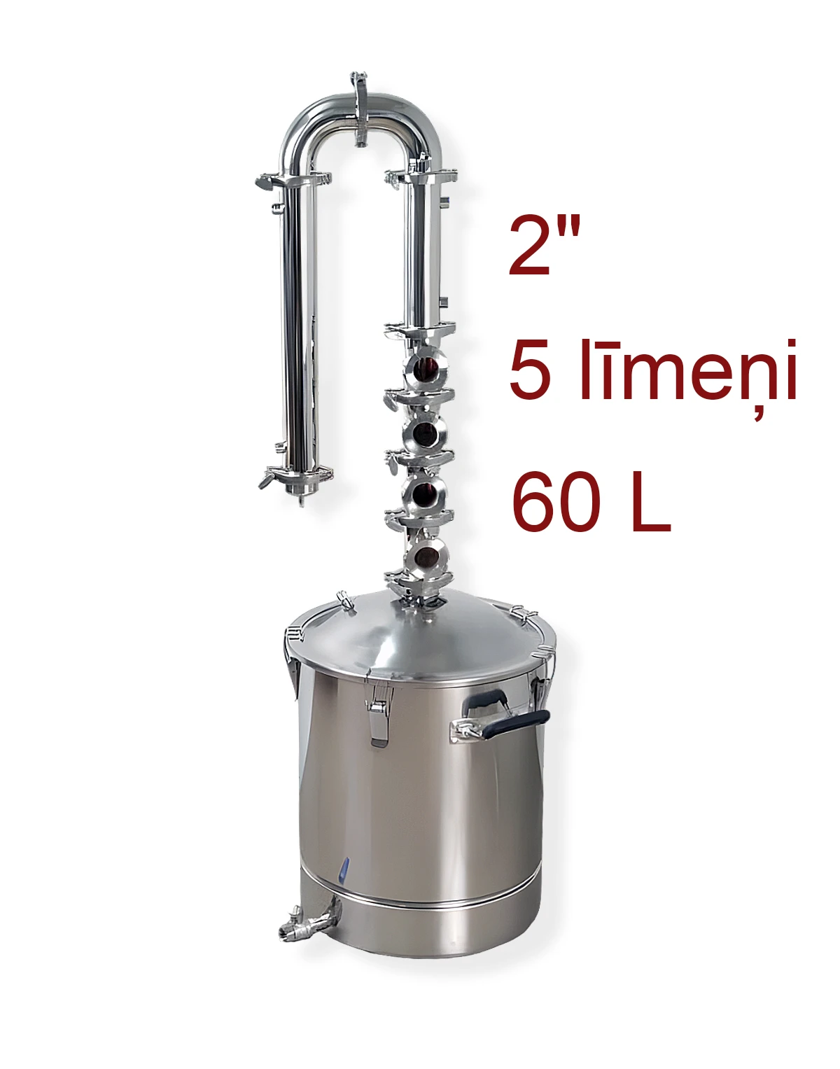 60l 2″ destilācijas un rektifikācijas aparāts ar 5 vara līmeņiem BABYLON PREMIUM.
