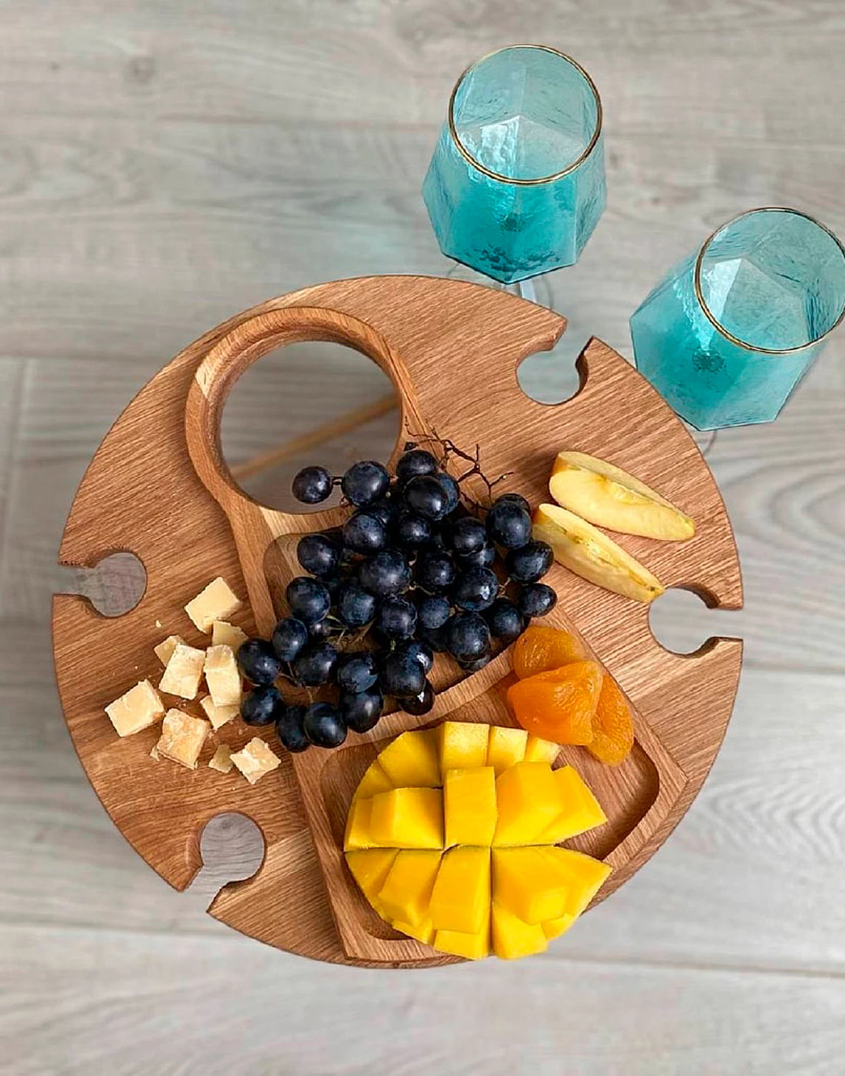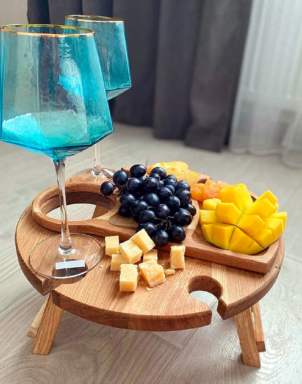 Vīna galdiņš (ozolkoka) 4 personām ar plāksni uzkodām